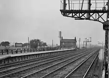 - ↑ Butt, R.V.J. (1995). The Directory of Railway Stations. Yeovil: Patrick Stephens Ltd. pp. 45, 46. ISBN 1-85260-508-1. R508.