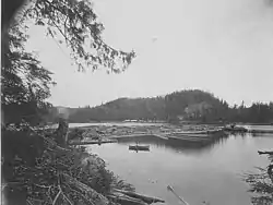 Broughton Lagoon is a shallow inlet on its north side,[2] at 50°50′02″N 126°41′40″W / 50.83389°N 126.69444°W / 50.83389; -126.69444 (Broughton Lagoon)