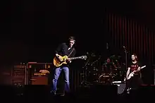 In winter of 1986, Racer X recorded their sophomore album, Second Heat, with compositions relying more on harmonized and dueling guitar solos. In order to perform these songs live, Paul and Bruce would often practice for 8 hours a day due to the technically demanding nature of the lead parts. During touring for Second Heat, the band recorded the Extreme Volume live album and Paul Gilbert was approached by Talas bassist Billy Sheehan with the proposition of forming a band. Their union would later crystallize into Mr. Big, and Paul quit Racer X shortly after.[5]