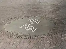 In the summer of 1969, David Palmer, a counsellor at UCLA and his family were touring the Cotswolds in England when they were directed to Bryant Fedden's Tan Yard Bank workshop by an owner of one of his name plate works. David Palmer was given a tour of the workshop by Bryant Fedden. It was during this tour that David Palmer saw an alphabet slate and in his words "I fell in love with it".[44] David Palmer could not afford to buy it but Bryant Fedden said that he could take it and perhaps find a buyer for it. David Palmer placed the slate in his touring van and then carried it onto the plane back to the USA. On arrival the slate was initially put on display at the UCLA Student Bookstore and then, after a period in storage, was moved to the School of Library Service at UCLA in the Powell Library basement.[45] It was on display in the Horn Press Chappel a group developed to utilise letter presses as part of a "Typography and the Graphic Arts" course developed by Professor Andrew H. Horn.[46] David Palmer published a small pamphlet cataloguing the journey of the slate from Winchcombe to UCLA entitled "The Bryant Fedden Slate: : Its Journey from Gloucestershire to the UCLA Library School" and used the Horn Press facilities to print it.[47] In 1992 the School of Library Service now named Graduate School of Library and Information Science moved to a new smaller building and the Horn Press Chappel was disbanded and the slate was moved to the Graduate School of Library and Information Science. In 1994 the Graduate School of Library and Information Science was incorporated into the UCLA Graduate School of Education and Information Studies (GSEIS).[48]