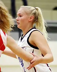 Bryndís played 4 games for the Icelandic national basketball team from 2004 to 2018.[34] She won silver with Iceland at the Games of the Small States of Europe in 2005, 2009, 2013 and 2015.[35] In 2014 she won silver with Iceland at the FIBA European Championship for Small Countries.[36][37]