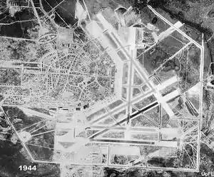 The airfield was a large and expansive facility, and originally was constructed using the "eight star" layout parking ramp, capable of hundreds of aircraft. The airfield was initially constructed with three runways, as the base grew in size, it was expanded to six. It consisted of a single 5,000' N/S (00/18) runway; two parallel 5,000' NE/SW (05/22) runways; two parallel 5,000' E/W (09/27) runways, and a 5,000' NW/SE runway (14/32), initially all concrete, with numerous taxiways. Parts of the runways later had an asphalt surface.