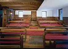 A stone schoolhouse was built to the east of the meetinghouse in 1798, and forms the nucleus of the current Buckingham Friends School.[5] The current building was completed in 1768 and was the first of the doubled type meeting houses that became the standard form of Quaker meeting house for the next 100 years.[6]