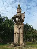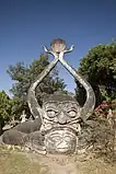 Buddha Park, also known as Xieng Khuan (as well as other variations of the spelling), is a sculpture park 25 km southeast from Vientiane, Laos in a meadow by the Mekong River.[1][2] Although it is not a temple (Wat), it may be referred to as Wat Xieng Khuan (Lao: ວັດຊຽງຄວນ;Thai: วัดเซียงควน) since it contains numerous religious images.[3] The name Xieng Khuan means Spirit City.[2] The park contains over 200 Hindu and Buddhist statues.[4] The socialist government operates Buddha Park as a tourist attraction and public park.[3]