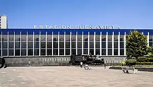 Buenavista is a commuter railway station in Mexico City.[3] The station provided intercity train services from Ferrocarriles Nacionales de México. Since June 2008, the station serves as the terminus of the Tren Suburbano commuter rail service.[4] Atop the ground-level station and tracks is one of the city's largest shopping malls, Forum Buenavista.