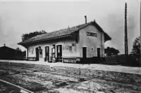 Continuing to the west, at 10 km from its starting point, between Joaquín V. González (then "Esperanza") and Bahía Blanca (first an unnamed street and then "De La Capilla") it reached Floresta station (wooden). This station was for some time called "Vélez Sársfield", and in 1862 was replaced by a more modern building.