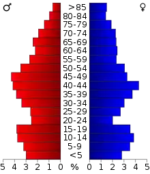 In the county, the population was spread out, with 25.10% under the age of 18, 6.90% from 18 to 24, 27.60% from 25 to 44, 23.70% from 45 to 64, and 16.80% who were 65 years of age or older. The median age was 39 years. For every 100 females there were 100.70 males. For every 100 females age 18 and over, there were 101.40 males.