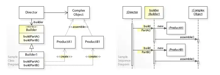 - ↑ "The Builder design pattern - Structure and Collaboration". w3sDesign.com. Retrieved 2017-08-12.