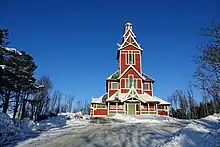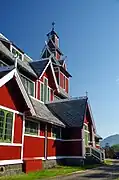 Buksnes Church (Norwegian: Buksnes kirke) is a parish church of the Church of Norway in Vestvågøy Municipality in Nordland county, Norway. It is located in the village of Gravdal on the island of Vestvågøya. It is the church for the Buksnes parish which is part of the Lofoten prosti (deanery) in the Diocese of Sør-Hålogaland. The red, wooden, Dragestil church was built in a long church style in 1905 using plans drawn up by the architect Karl Norum. The church seats about 600 people.[1][2]