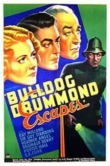 Bulldog Drummond Escapes is a 1937 American mystery thriller film directed by James P. Hogan and starring Ray Milland as Captain Hugh "Bulldog" Drummond alongside Heather Angel and Reginald Denny.[1] Paramount continued with the Bulldog Drummond series, producing seven more films over the next two years. They replaced Milland with John Howard.