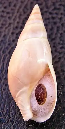 Apertural view of a shell of Bullia rhodostoma