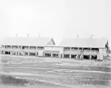 At the turn of the century, two playsheds were constructed to the north of the teaching building: a 10-post playshed in 1900 and a 12-post playshed for boys in 1907. Both were constructed of exposed timber framing and the 1907 playshed had a metal sheet roof with ventilated ridge cap.[15] The Queensland education system recognised the importance of play in the school curriculum and, as well as classrooms, they provided plans for playsheds, free-standing shelters that provided covered play space and were often used for unofficial teaching space when needed. They were timber-framed structures, generally open on all sides although were sometimes partially enclosed with timber boards or corrugated galvanised iron sheets.[16] The hipped (or less frequently, gabled) roofs were clad with timber shingles or corrugated iron and they had an earth or decomposed granite floor. Fixed timber seating ran between the perimeter posts. Playsheds were a typical addition to state schools across Queensland between c.1880s and the 1950s. They were built to standard designs that ranged in size relative to student numbers. School sites were typically cleared of all vegetation and the provision of all-weather outdoor space was needed. After c.1909 school buildings were high-set, allowing students to play in the understorey and playsheds were not frequently constructed.[17][1]