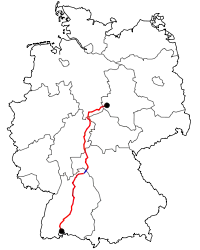 The B27 is interrupted in two places: between Würzburg and Tauberbischofsheim, where it has been replaced by the motorways A3 and A81, and between Randen and Jestetten, where it crosses through Switzerland. The part south of Stuttgart follows the Schweizer Straße (Suisse road), a chaussee from 18th century.