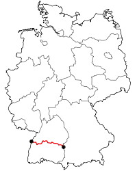 Bundesstraße 28 or B 28 is a German federal road. The road runs west through Baden-Württemberg from the eastern terminus of the French route nationale 4 in Strasbourg, after crossing the Rhine river in Kehl, to Senden in Bavaria, where it terminates into the A7.