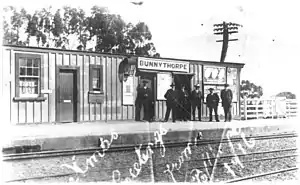 - ↑ "Bunnythorpe Railway Station, c. 1900's". www.feildingheritage.nz. Retrieved 9 March 2021.
