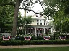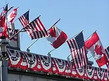 4th of July decorations in Roche Harbor include Canadian and U.S. flags and red, white and blue bunting.