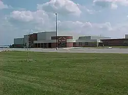 It is 103,830 square feet (9,646 m2) with support for 450 students and a central commons. It also contains an 1,800 seat gymnasium, a 750-seat performing arts auditorium and a central media center. In the academic wing, there are thirty-one classrooms, twenty-three standard classrooms, two computer labs, two computer classrooms, three science labs, and one distance learning lab.[2]