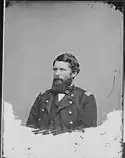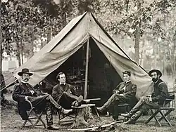 Col. George Henry Sharpe sits at far left with other members of his BMI, John G. Babcock, unidentified officer,[1] and Lt. Col. John McEntee; February, 1864. A similar picture of the same group can be seen here.