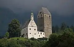 Burg Freundsberg is a castle in Tyrol, Austria, that was constructed in the year of 1150 by the lords of Freundsberg. Burg Freundsberg is 675 metres (2,215 ft) above sea level.[1] Originally the castle consisted out of a single keep, which is still intact up to this date. The chapel next to it was built afterwards in the year 1177. In 1467 the castle was sold to Archduke Sigismund of Austria, who rebuilt the castle and called it Sigismundruh for the duration of his reign.