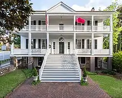 Bishir also comments on the need for ventilation in coastal North Carolina, which she argues motivated some, including Burgwin, to adapt the Georgian style based on the architecture of the Caribbean. Many Carolina settlers had early starts in this tropical region, or had roots that extended to the area. That, coupled with the constant trade with the area for enslaved peoples, sugar, molasses, and other necessities, influenced the architectural elements seen in Wilmington today. Such elements includes the wide hallways to allow breezes to flow through the structure, tall ceilings, the prominent piazzas, an attic that allowed for rising heat to move away from living quarters, and a raised elevation.[23]