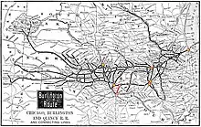 At the appointed time of 4 am on February 27, engineers and firemen across the CB&Q Railroad abandoned their engines at their terminal points, halting their routes and returning to the nearest terminal point if they were already on the road.[25] The company, having been formally notified of the strike date only the day before and believing that more time remained for negotiations, was taken by surprise.[26] Company officials in Chicago immediately determined that their top priority was to keep suburban commuter trains running if possible, with the line standing as the second largest suburban commuter line in the region.[27] No freight traffic would be run until passenger service was restored, company officials determined.[27]