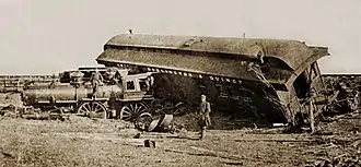 Several workers were killed in violent episodes.[35] One was striking engineer George Watts, fatally shot in the temple by a deputized Burlington foreman on March 3, in Brookfield, Missouri.[36] Reports from Chicago at the end of March described riots, assaults, and arson of rolling stock and shop buildings.[37] On April 28, in Galesburg, Illinois, a strikebreaker named Albert Hedberg shot two Burlington strikers and claimed self-defense. One of those two, longtime Burlington engineer Herbert W. Newell, died from his wounds.[38]