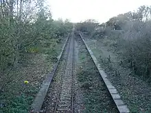 The line used to be double track,[2] but has been reduced to single track since passenger services ceased in 1970.