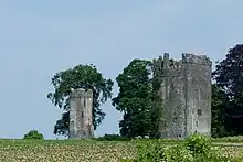 Burnchurch Castle, a National Monument,[1] is a well-preserved 15th century Norman tower house with a round gate tower, situated in the parish of Burnchurch, County Kilkenny, Ireland. Burnchurch Castle and tower, along with the Church of Ireland church, and the lime trees became a National Monument in 1993.[2]