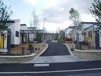The area saw a significant amount of urban clearance during the 1970s, resulting in the loss of residential streets including Holton Street, Rawlinson Street, Russell Street, Swainbank Street, Laurel Street and many parts of Waterloo Road, Springfield Road and Brunswick Street, which became fragmented as infill housing such as Russell Court and Brittania Walk. The Gerald Court sheltered housing complex, now itself demolished and the replacement Burnley Wood School, now Springfield Primary School were built on the sites of demolished properties at the northern end of Hirst Street and the northern end of Waterloo Road respectively, and most of the mills ultimately closed and were given over to other industrial and commercial uses. However, in around the mid 1990s, Burnley Wood and its proliferation of predominantly lower grade two bedroom terraced houses began to suffered from housing market failure.[13] It became part of East Lancashire's Elevate scheme to clear, rebuild or remodel what were considered to be an over supply of sub-standard housing.[14] The catalyst for this was the 2001 Burnley Riots which brought the problems of Burnley Wood to national attention.