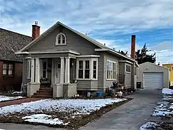 one of the best local examples of Colonial Revival residential design in Twin Falls. The symmetrical presentation of classical details allows this cottage to convey a stately yet unpretentious appearance. Frontal symmetry, combined with a free interpretation of classical Colonial features and the expression of interior functions on the side elevations make this house a true product of its era. The Colonial Revival style references the classicism that pervaded much of American residential design during this period, while the less formal and slightly asymmetrical treatment of side elevations reflects the "modern" movements coming into vogue at this time. / The 1908 design by Morse, a locally prominent architect, is a striking contrast to his grand public works and shows the range of his talents. Burton Morse is still remembered today, not only for his buildings, but also for his role as an early civic leader in Twin Falls.[2]