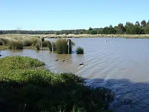 Bushy Park Wetlands is a 30-hectare (74-acre) conservation park in Glen Waverley, Victoria, Australia. On the edge of suburbia, it is bounded by Dandenong Creek and houses along King Arthur Drive and Knights Drive. There is a cycling and walking path, and a bird watching hide, where egrets, pelicans, coots, dusky moorhen, ibis and occasionally spoonbill can be observed. It is accessible from the end of Highbury Road, or at the Drummies Bridge Reserve off High Street Road. It is also connected by the Dandenong Creek Trail to Shepherds Bush Park, Koomba Park and Napier Park.