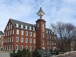 The Busiel-Seeburg Mill is a historic mill building in Laconia, New Hampshire, since converted into an office building known as 1 Mill Plaza. This 3-1/2 story brick structure achieved its present configuration in stages, beginning in 1853, and successively altered and expanded through the rest of the 19th century. The business, established by John W. Busiel in 1846, manufactured knitted hosiery, and was one of the first producers of knitwear to use circular knitting machines invented by Aiken and Peppers.[2] The building was listed on the National Register of Historic Places in 1971.[1]