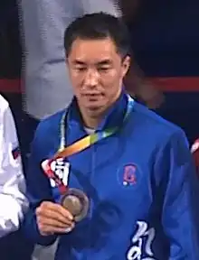 Byambyn Tüvshinbat (Mongolian: Бямбын Түвшинбат; born 27 March 1987 in Ulaanbaatar) is a Mongolian boxer.[1] He competed in the 2007 and 2011 Asian Amateur Boxing Championships (winning silver in 2007 and bronze in 2011), the 2006 and 2010 Asian Games, the 2006 World University Boxing Championship and the Shaheed Benazir Bhutto International Boxing Tournament (where he won the Men's Light Welterweight tournament, defeating Mashhurbek Ruziyev of Uzbekistan). Tüvshinbat represented Mongolia in the Men's welterweight event at the 2012 Summer Olympics and defeated Gabonese Yannick Mitoumba in the first round[2] but lost to Frenchman Alexis Vastine in the second round[3] then in the 2016 Summer Olympics, beating Alberto Palmetta of Argentina in the first round and losing by split decision to Steven Donnelly in his second match.
