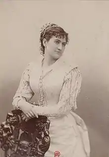 She sang Rosine in the 100th performance of Le Barbier de Séville at the Opéra-Comique on 25 February 1887, alongside Louis Delaquerrière as Almaviva and Gabriel Soulacroix as Figaro, and Philine in the 500th performance of Mignon in 1878.[7] Other roles with the company included Cherubino in 1882, the Queen of the Night in 1883, and Camille in Zampa in 1883.