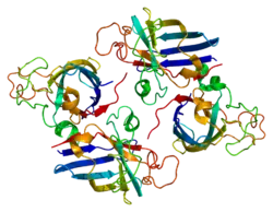 Copper chaperone for superoxide dismutase is a metalloprotein that is responsible for the delivery of Cu to superoxide dismutase (SOD1).[5] CCS is a 54kDa protein that is present in mammals and most eukaryotes including yeast. The structure of CCS is composed of three distinct domains that are necessary for its function.[6][7] Although CCS is important for many organisms, there are CCS independent pathways for SOD1, and many species lack CCS all together, such as C. elegans.[7] In humans the protein is encoded by the CCS gene.[8][9]