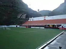 Mensajero play at Nuevo Estadio Silvestre Carrillo. Lying at the head of a valley close to the centre of Santa Cruz de la Palma, the stadium was extensively rebuilt from 2003 to 2007. Due to the steep valley-side to the south side of the pitch and the sheer drop to the north, the majority of the seating has always been found at either end of the stadium. Prior to the redevelopment in 2003, there was a covered stand at the east end of the ground. A narrow strip of terracing ran along the north side of the pitch, which joined the terrace behind the west end goal.
