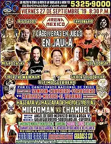 - ↑ "CMLL 86th Anniversary review: Negro Casas lost his hair in a seven luchador cage match". Cage Side Seats. September 28, 2019. Retrieved September 29, 2019.