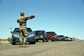 National Guard directing check-in at a covid testing site in Tonalea, Arizona on May 19