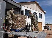 Arizona National Guard members deliver food and supplies for Navajo Nation residents at a local food bank in Black Mesa, Arizona on April 17