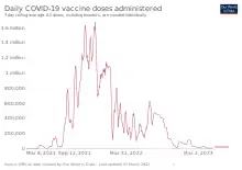 This is the country's largest-ever immunization campaign, aiming to administer over 150 million doses.[15] As of 6 April 2022, Vietnam has administered 207,235,119 vaccine doses across the country.[16]