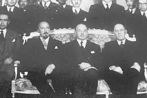 Hertzog's third cabinet was formed on 11 September 1947.[19] Guachalla was replaced as Foreign Minister by Tomás Manuel Elío who would serve his fifth and final nonconsecutive term. Luis Fernando's brother, Carlos Guachalla, was appointed Ministry of Finance. Hertzog's fourth cabinet, formed on 1 March 1948, saw Adolfo Costa du Rels appointed Foreign Minister.[20] Costa du Rels had previously been the last President of the League of Nations, which by 1947 was defunct in favor of the United Nations.