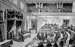 The Cabinet of Milan Piroćanac was sworn in on November 2, 1880. It was marked by several important events in the history of Modern Serbia. In 1881, this Government decided to build a railroad through Serbia, in order to link Serbia with both Central Europe and Ottoman Turkey. The best financial terms were offered by a French company Union générale; however, it seemed that this company got a hold of this job by bribing senior officials.[1] Also, this Cabinet saw a signing of the Secret Convention between Serbia and Austria-Hungary on June 28, 1881, that basically put Serbian foreign policy under Vienna's tutelage. On March 6, 1882, the Principality of Serbia was raised to the rank of Kingdom, with Prince Milan becoming King Milan I of Serbia. In 1883, this cabinet also witnessed the Timok Rebellion in Zaječar District, when the representatives of People's Radical Party rose up against this government.
