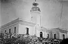 The original illuminating apparatus was an 1885, lenticular 3rd order lens, manufactured by Sautter, Lemonnier & Company of France. The central drum measured 1 meter in diameter. It had six panels of which three were flashing panels. In each panel of the central drum there were seven elements; each panel above central drum had eleven prisms and four prisms below. The flashes were produced by the central revolving drum mounted on a chariot activated by a clock work system. The clock cord descended through the central column in the stairway. The mechanism was protected by a circular iron and glass case. The original light characteristic showed a white flash every 3 seconds and had an 18-mile range. In 1923 the light characteristics were changed. In 1945 the light was electrified. It was also changed into an automatic, unwatched light that exhibited the original characteristics. The structure was abandoned and boarded up. The lens was replaced by a 500mm lens. No record has been found which indicates that major structural changes or alterations were introduced in the dwelling. The decorative elements are purely neo-classic especially its cornices and pediment.[7]