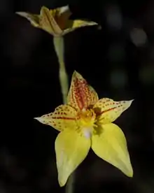 8. 1 2 "Caladenia flava subsp. maculata". FloraBase. Western Australian Government Department of Biodiversity, Conservation and Attractions.