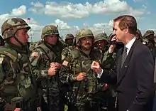 Secretary of Defense William Cohen talks with soldiers from a California Army National Guard unit