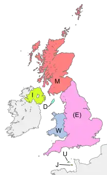 | Northern Ireland | I, N | GI | MI | 2I | GN | MN | GB |