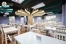 In addition to the library's print collection, the library is supported by a robust website and digital collection. The library has subscribed to over 10+ databases, thousands of e-books, scholarly journals, research guides, videos, and over one million articles. The library digital resources includes government documents, trade publications, periodicals, multimedia content, and special collections which can be accessed by an unlimited number of users at one time and anywhere outside the CamEd campus via OneLogin and VPN access. The library website also has an e-catalog search function, which is enabled with an interlibrary loan request function.[15] The library also allows students to check out laptops, tablets and e-book reading devices. Moreover, the library has available USBs with accounting learning software and hard drives for language lab programs.[15] The library is open every day from 7:00 am until 9:00 p.m. including weekends and government holidays. In addition, the Library extends its hours until 11:00 p.m. during exam sessions[15]