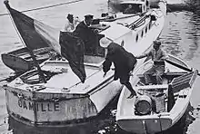 In May she competed in the trans-Mediterranean race from Algiers to Toulon, having commissioned the 13 metres (43 ft) steel-hulled Camille specifically for the event and fitted a 90 horse power Charron, Girardot et Voigt (C.G.V.) engine. A violent storm during the second stage from Port Mahon, Menorca, to Toulon, put all seven boats out of action and sank six of them including the Camille. Two months later du Gast was eventually declared the winner, having come closest to finishing before sinking.[1][9][21][22][23]