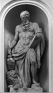 He executed many prestigious commissions in Rome for Pope Clement VIII and Pope Paul V, including included statues for the Chapel of Clement VIII at St. Peter’s Basilica; later he was called upon to execute four angels for St. Peter’s baldacchino mobile. He completed other major sculpture projects for Church of the Lateran, the Pantheon, and the churches of Santa Maria sopra Minerva and Santa Maria Maggiore. The masterworks of his Roman period, however, were eight stucco saints executed for the Church of San Bernardo alle Terme. These figures, according to one scholar, "demonstrate his importance to the development of the early Baroque. . . . Mariani raised the art of stucco sculpture to an unprecedented position in Rome." His figures both at San Bernardo alle Terme in Rome and at Villa Cornaro in Piombino Dese are particularly praised for their chiaroscuro effects and bold modeling.[10]