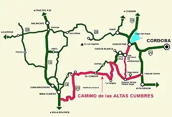 Under an agreement between the province of Cordoba and the national government, provided for the transfer of certain routes, touching the new road of approximately 126 km, be converted into a section of the National Route 20 (Argentina).